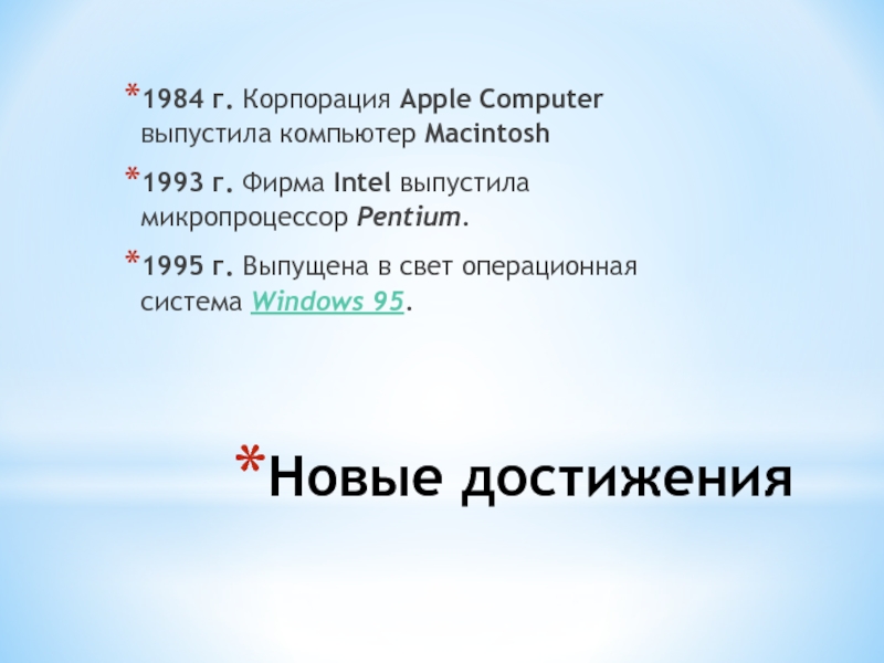 1984 г. Корпорация Apple Computer выпустила компьютер Macintosh