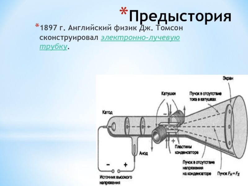 1897 г. Английский физик Дж. Томсон сконструировал электронно-лучевую трубку.