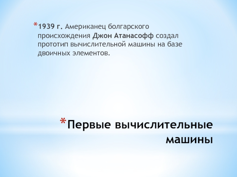 1939 г. Американец болгарского происхождения Джон Атанасофф создал