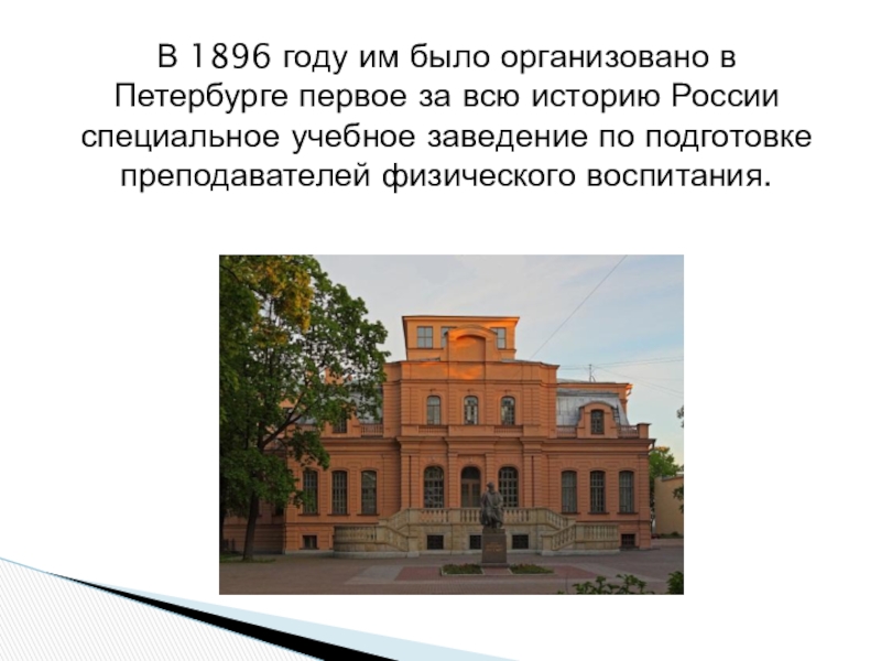 Слайд 29В 1896 году им было организовано в Петербурге первое за