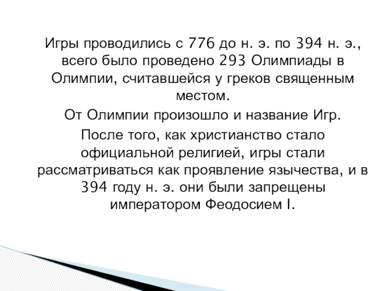Слайд 13Игры проводились с 776 до н. э. по 394 н.