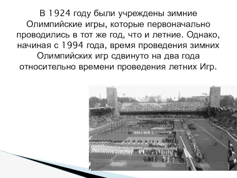 Слайд 16В 1924 году были учреждены зимние Олимпийские игры, которые первоначально