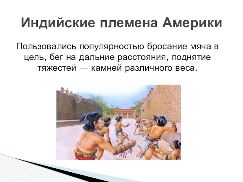 Слайд 4Пользовались популярностью бросание мяча в цель, бег на дальние расстояния,