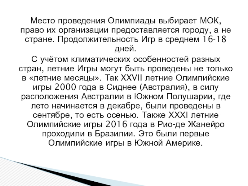 Слайд 17Место проведения Олимпиады выбирает МОК, право их организации предоставляется городу,