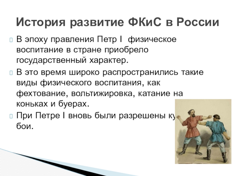 Слайд 21В эпоху правления Петр I физическое воспитание в стране приобрело