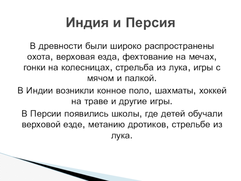 Слайд 9В древности были широко распространены охота, верховая езда, фехтование на