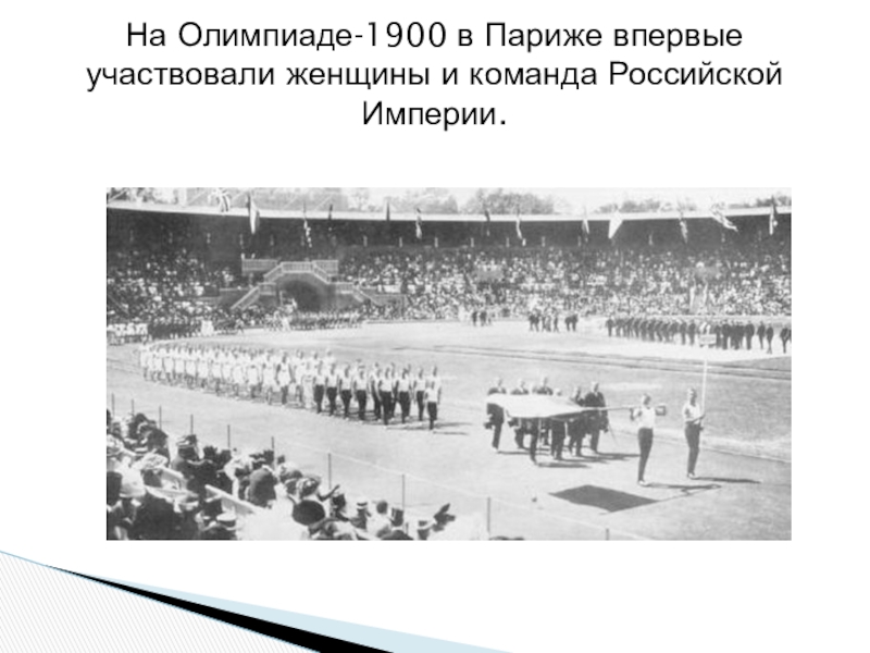 Слайд 15На Олимпиаде-1900 в Париже впервые участвовали женщины и команда Российской