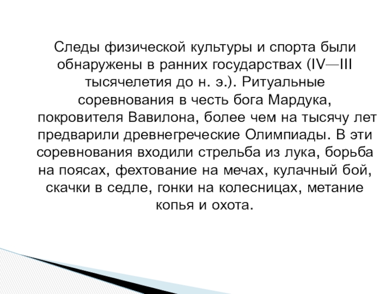 Слайд 8Следы физической культуры и спорта были обнаружены в ранних государствах