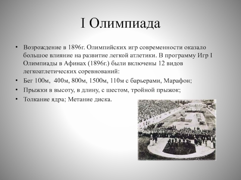 на развитие легкой атлетики. В программу Игр I Олимпиады в