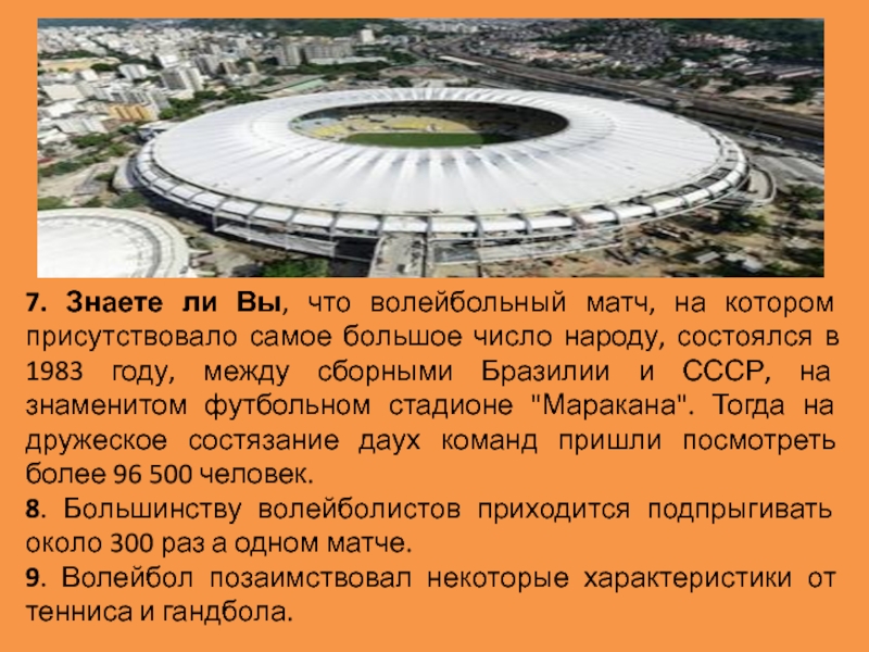 Слайд 187. Знаете ли Вы, что волейбольный матч, на котором присутствовало