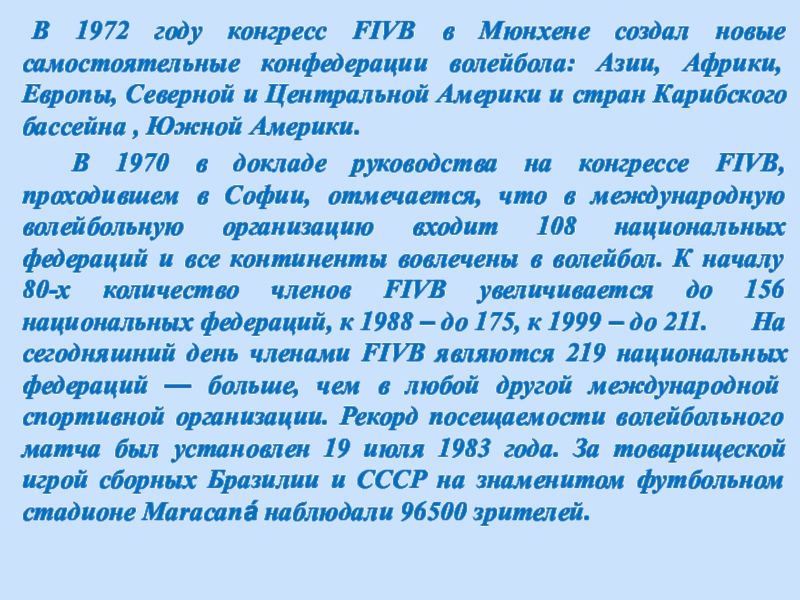 Слайд 9 В 1972 году конгресс FIVB в Мюнхене