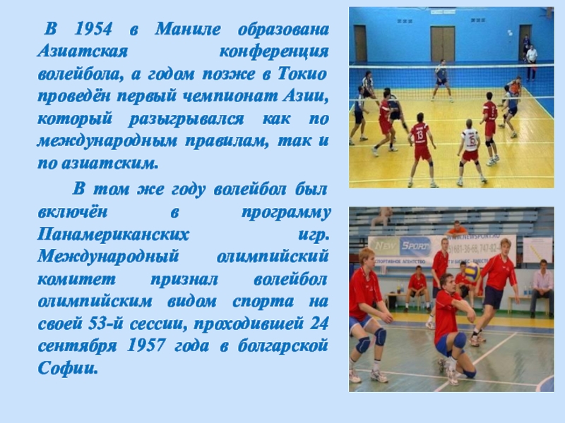 волейбола, а годом позже в Токио проведён первый чемпионат Азии,