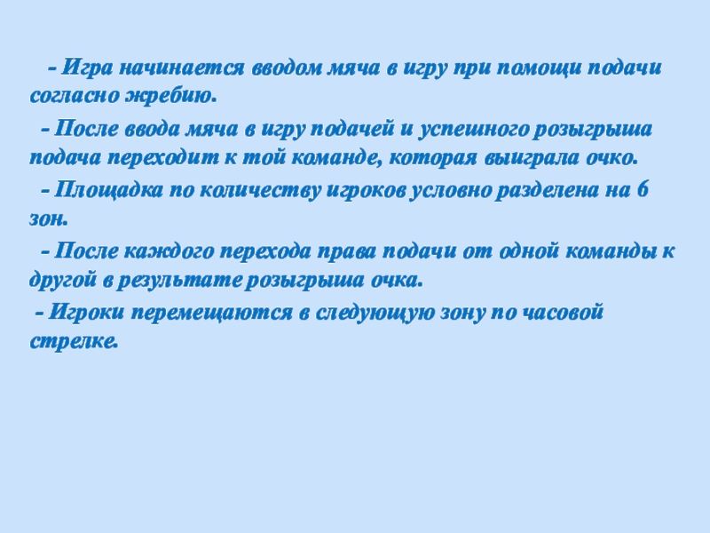- Если игрок, который подавал, нарушил правила или отправил мяч в аут, то очко засчитывается принимающей команде.