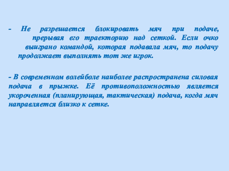 Слайд 19- Не разрешается блокировать мяч при подаче,
