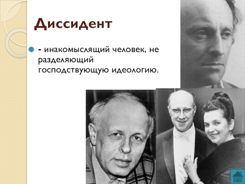 Диссидент- инакомыслящий человек, не разделяющий господствующую идеологию.