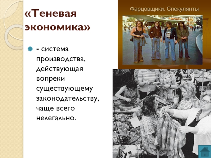 «Теневая экономика» - система производства, действующая вопреки существующему законодательству, чаще всего нелегально.