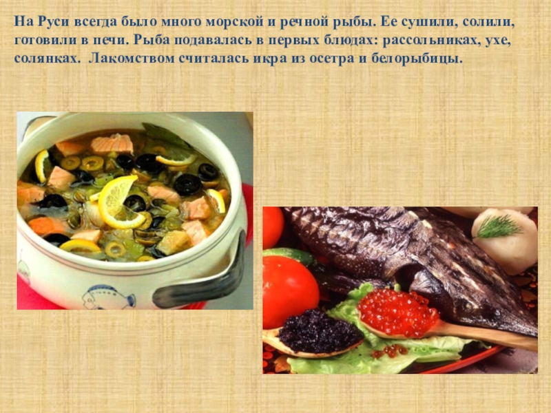 Слайд 10На Руси всегда было много морской и речной рыбы. Ее