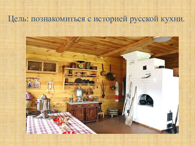 Слайд 2Цель: познакомиться с историей русской кухни.