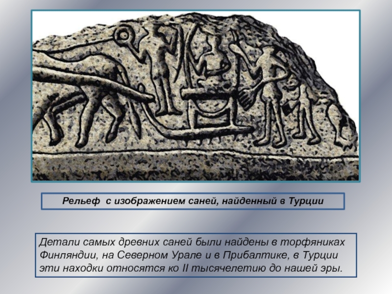 Слайд 4Рельеф с изображением саней, найденный в Турции