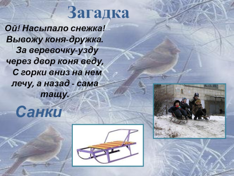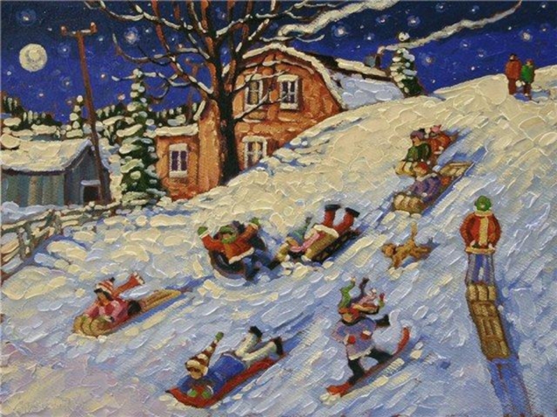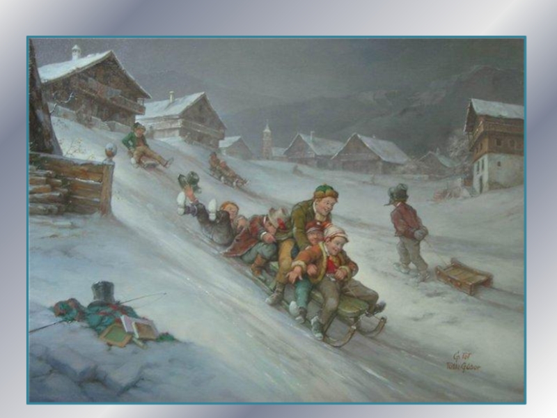 Слайд 41Катание на санях- любимая забава детей