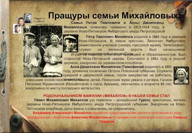 1895 г/р)-младшие сёстры Павла. Павел Харитонович участник I Мировой Войны, ефрейтор 11 роты 464 Селигерского полка (Северный фронт).