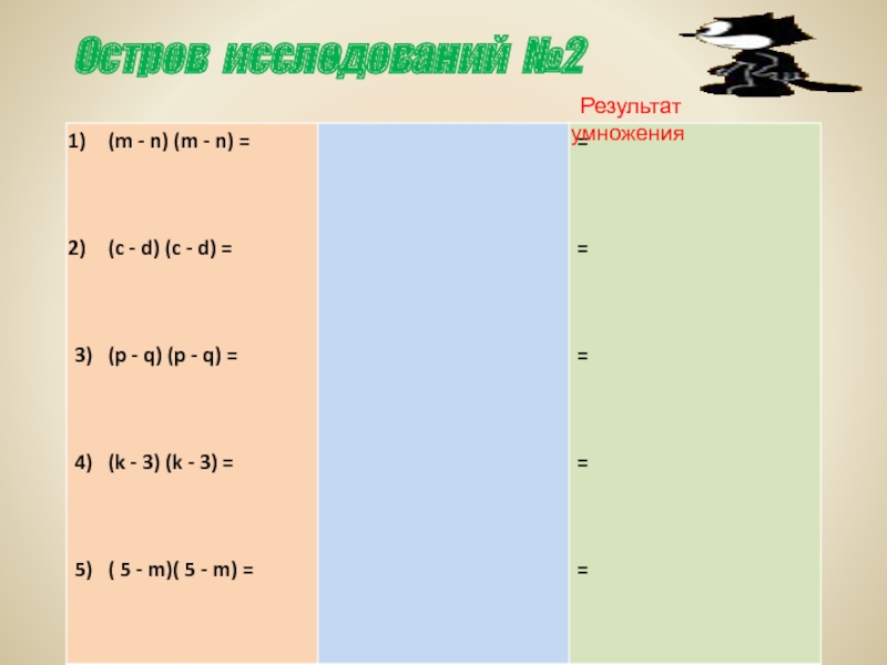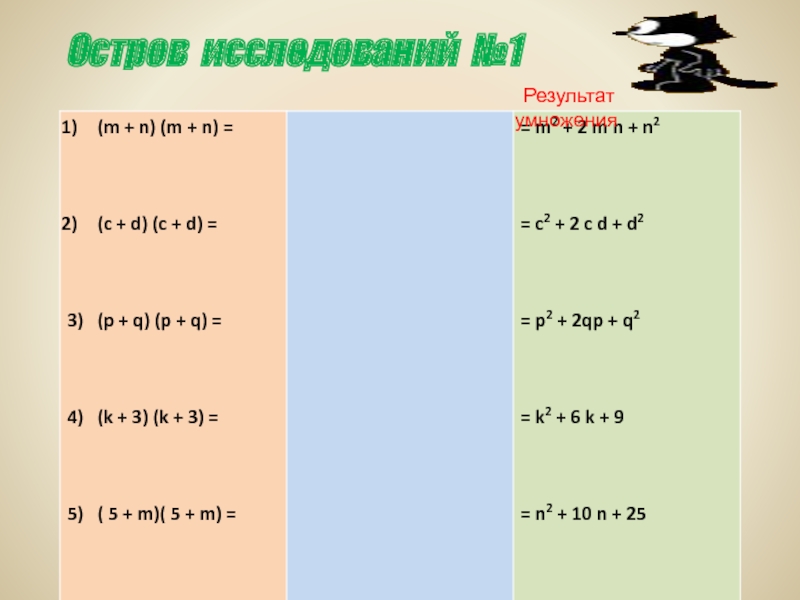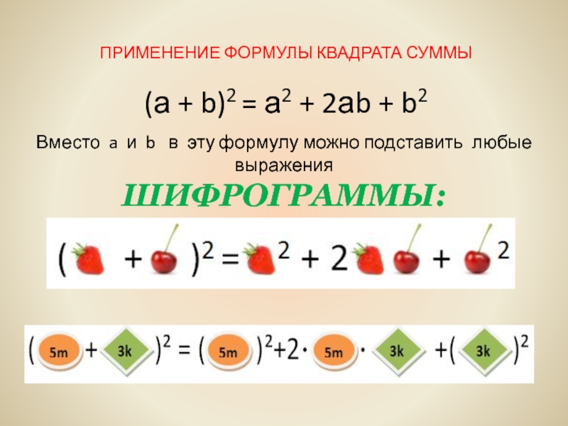 остальные. Так, древнегреческими математиками еще до нашей эры (более 2000 лет назад) геометрическим способом были выведены некоторые формулы, которые получили название формулы сокращенного умножения.