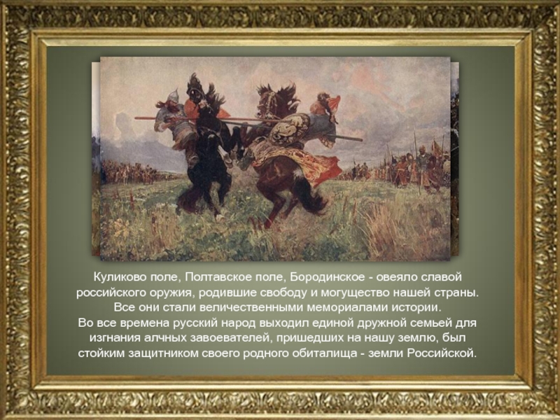 Слайд 6Куликово поле, Полтавское поле, Бородинское - овеяло славой российского оружия,