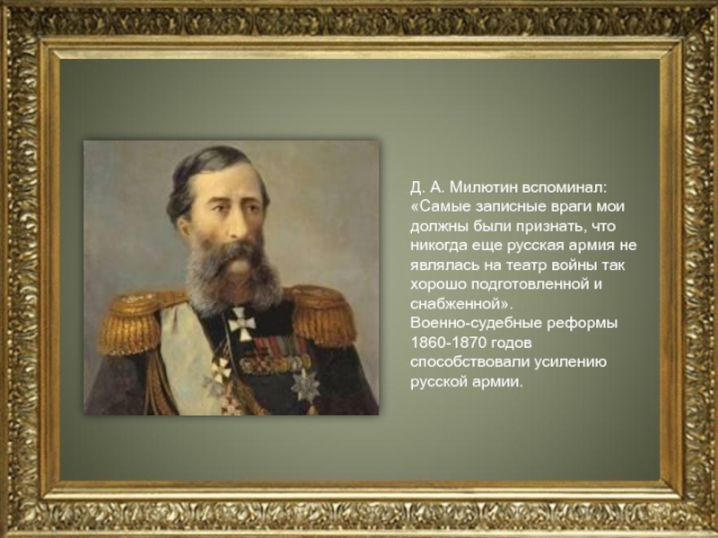 Военные реформы 1860-1870 годов под руководством военного министра Д.Ю.Милютина, их особенности.