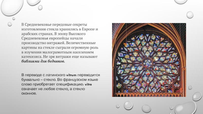 Слайд 11В Средневековье передовые секреты изготовления стекла хранились в Европе и