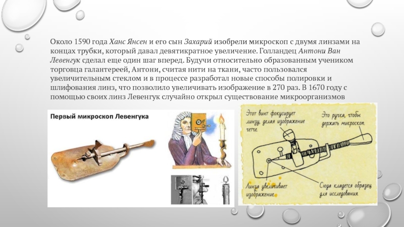 Слайд 15Около 1590 года Ханс Янсен и его сын Захарий изобрели микроскоп с