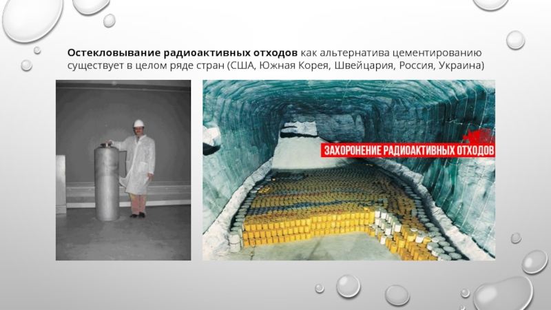 Слайд 18Остекловывание радиоактивных отходов как альтернатива цементированию существует в целом ряде