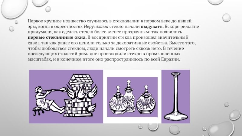 нашей эры, когда в окрестностях Иерусалима стекло начали выдувать. Вскоре
