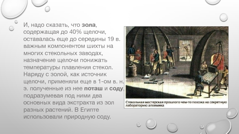 Слайд 4И, надо сказать, что зола, содержащая до 40% щелочи, оставалась