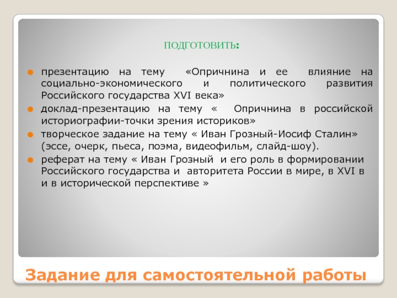 Подготовить доклад-презентацию на тему: