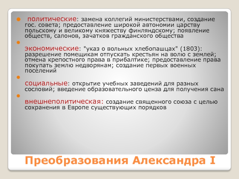 Слайд 116Преобразования Александра I