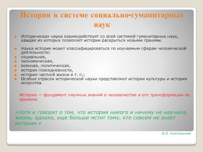 Слайд 9История в системе социально-гуманитарных наук