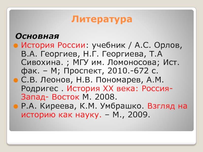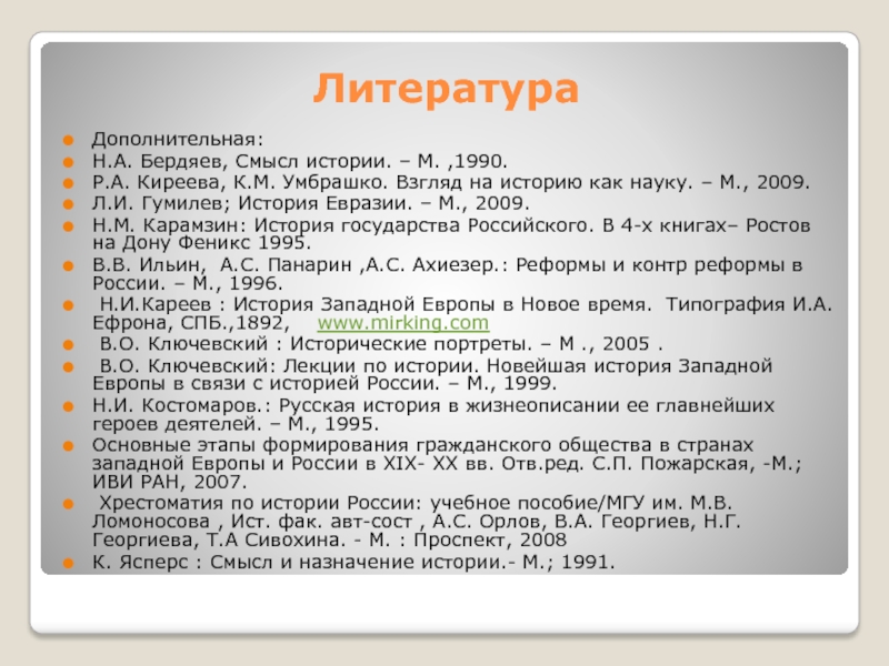Р.А. Киреева, К.М. Умбрашко. Взгляд на историю как науку. – М., 2009.