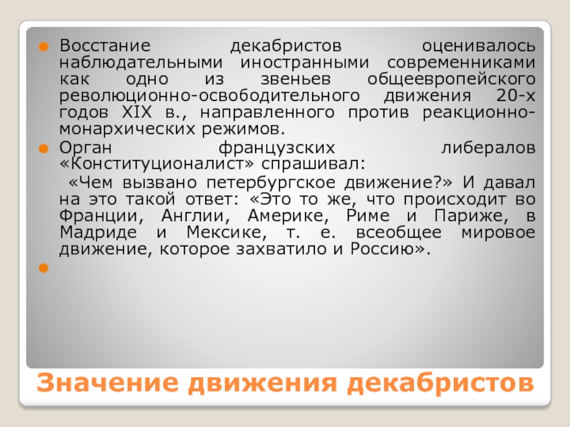 Слайд 124Значение движения декабристов
