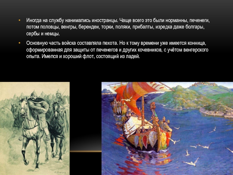 Слайд 4Иногда на службу нанимались иностранцы. Чаще всего это были норманны,