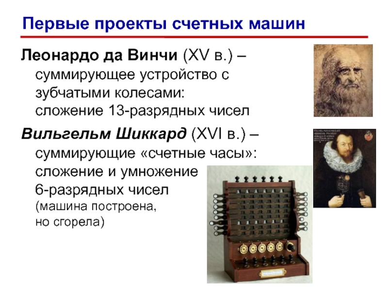 Первые проекты счетных машин
