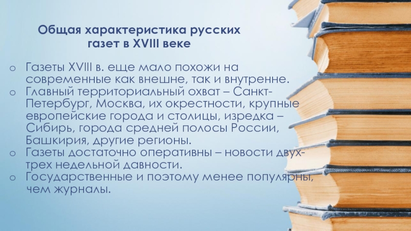 Слайд 11Общая характеристика русских газет в XVIII веке
