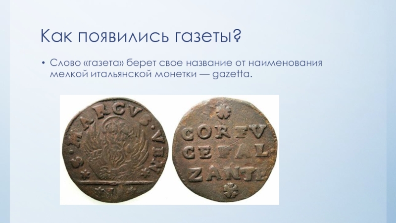 Слово «газета» берет свое название от наименования мелкой