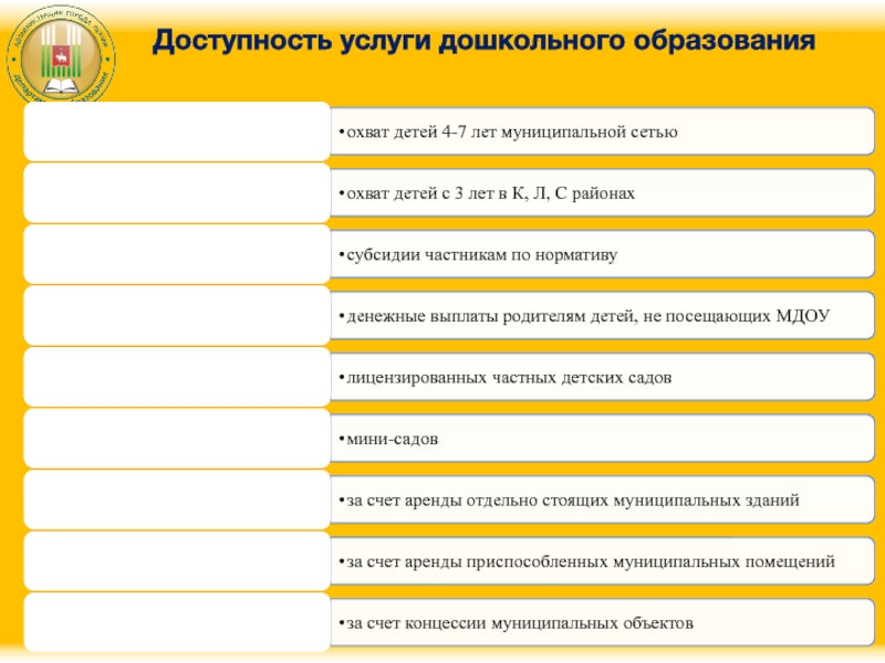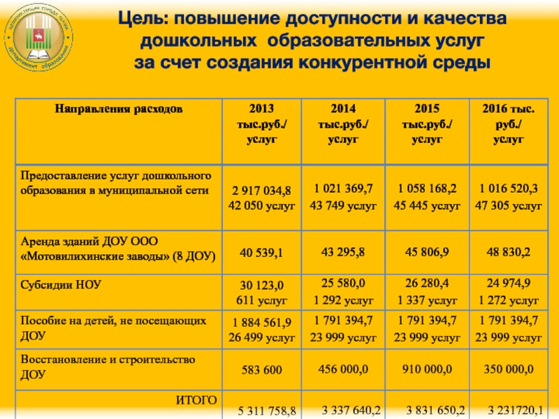 Цель: повышение доступности и качества дошкольных образовательных услуг за счет создания конкурентной среды