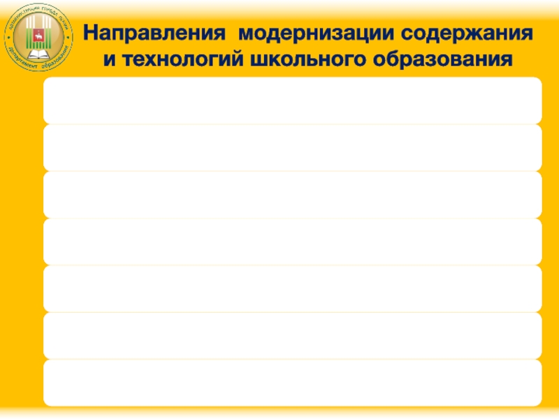 Слайд 26Направления модернизации содержания и технологий школьного образования