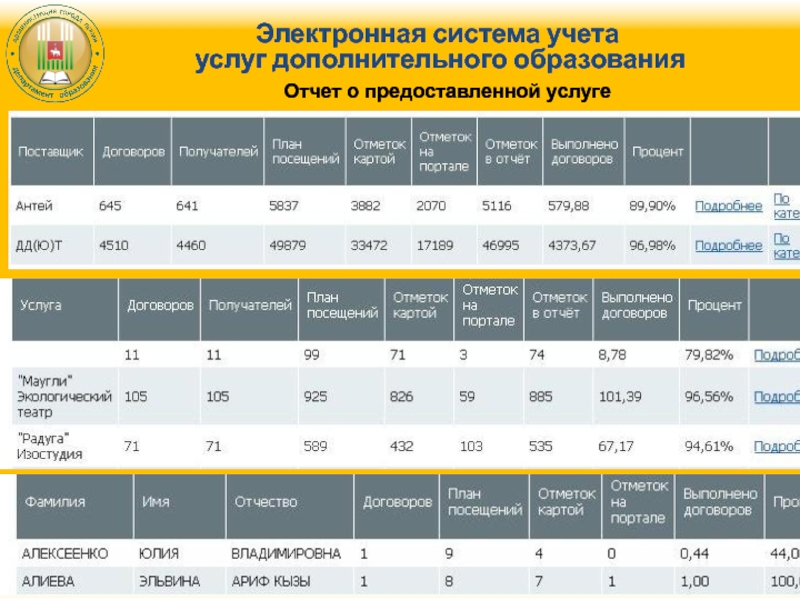 Электронная система учета услуг дополнительного образования Отчет о предоставленной услуге