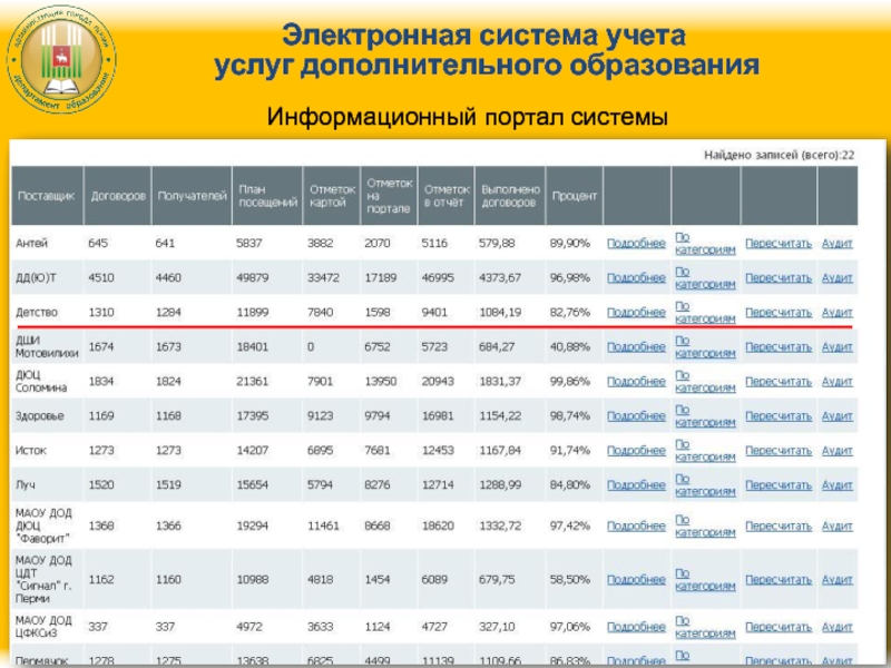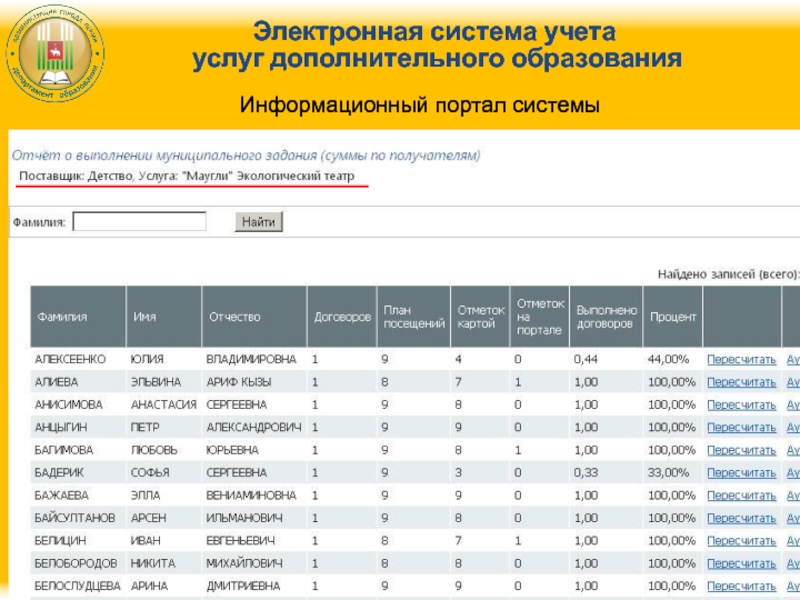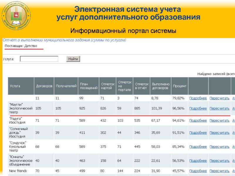 Электронная система учета услуг дополнительного образования Информационный портал системы