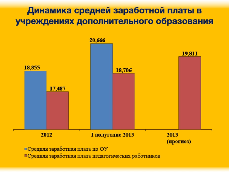 Слайд 39Динамика средней заработной платы в учреждениях дополнительного образования