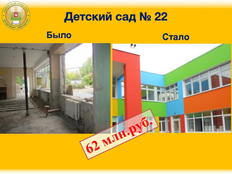 Слайд 13Ремонты и строительство дошкольных учреждений в 2013 году