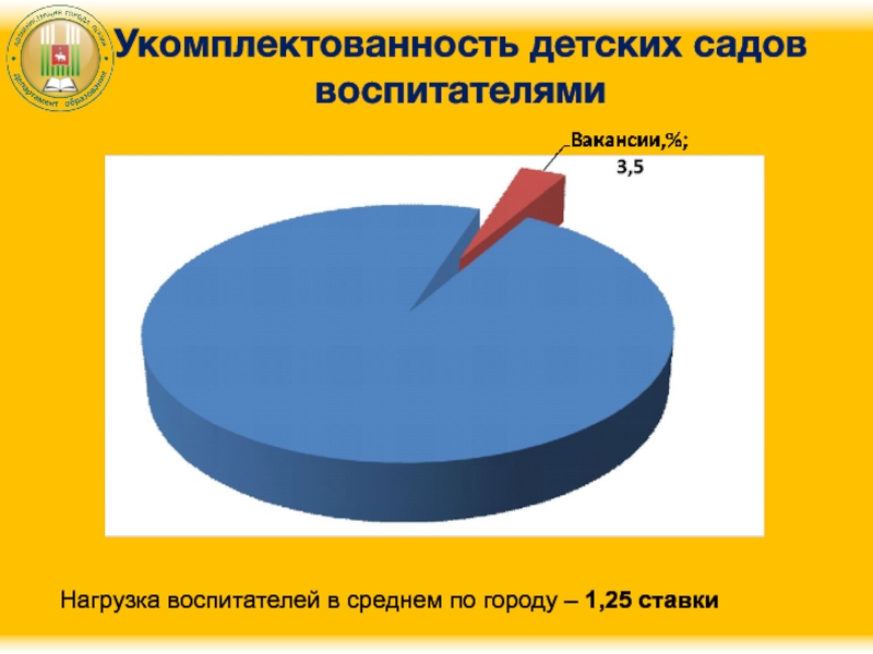 Укомплектованность детских садов воспитателямиНагрузка воспитателей в среднем по городу – 1,25 ставки