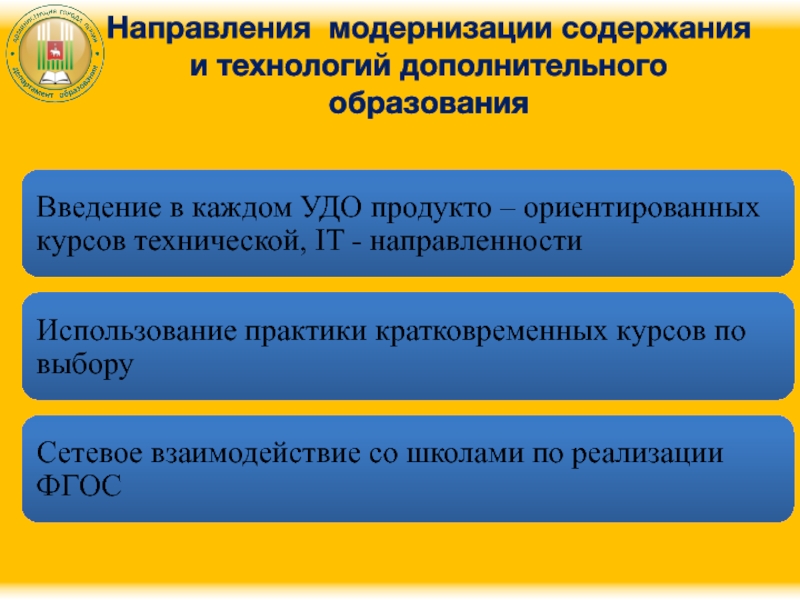 Слайд 33Направления модернизации содержания и технологий дополнительного образования
